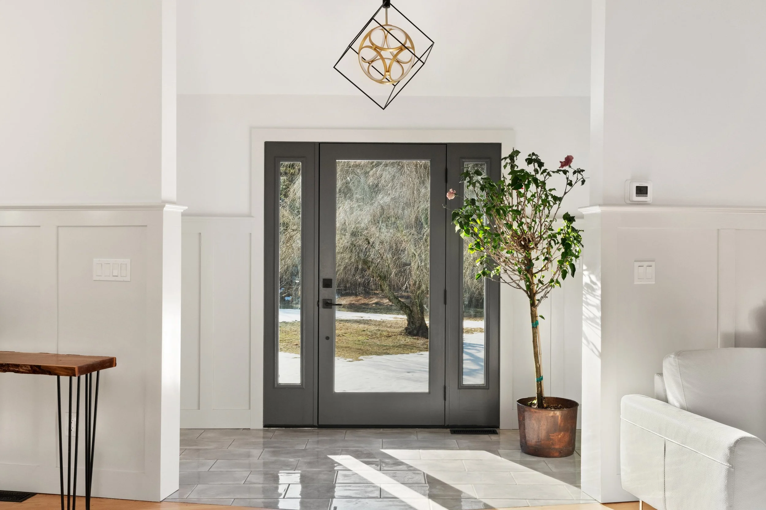 The entrance was architecturally reimagined with a custom metal roof, stone pillars and a bluestone approach. The exterior envelope was upgraded with Hardie siding, fresh paint, and a new roof-delivering both design impact and structural integrity.